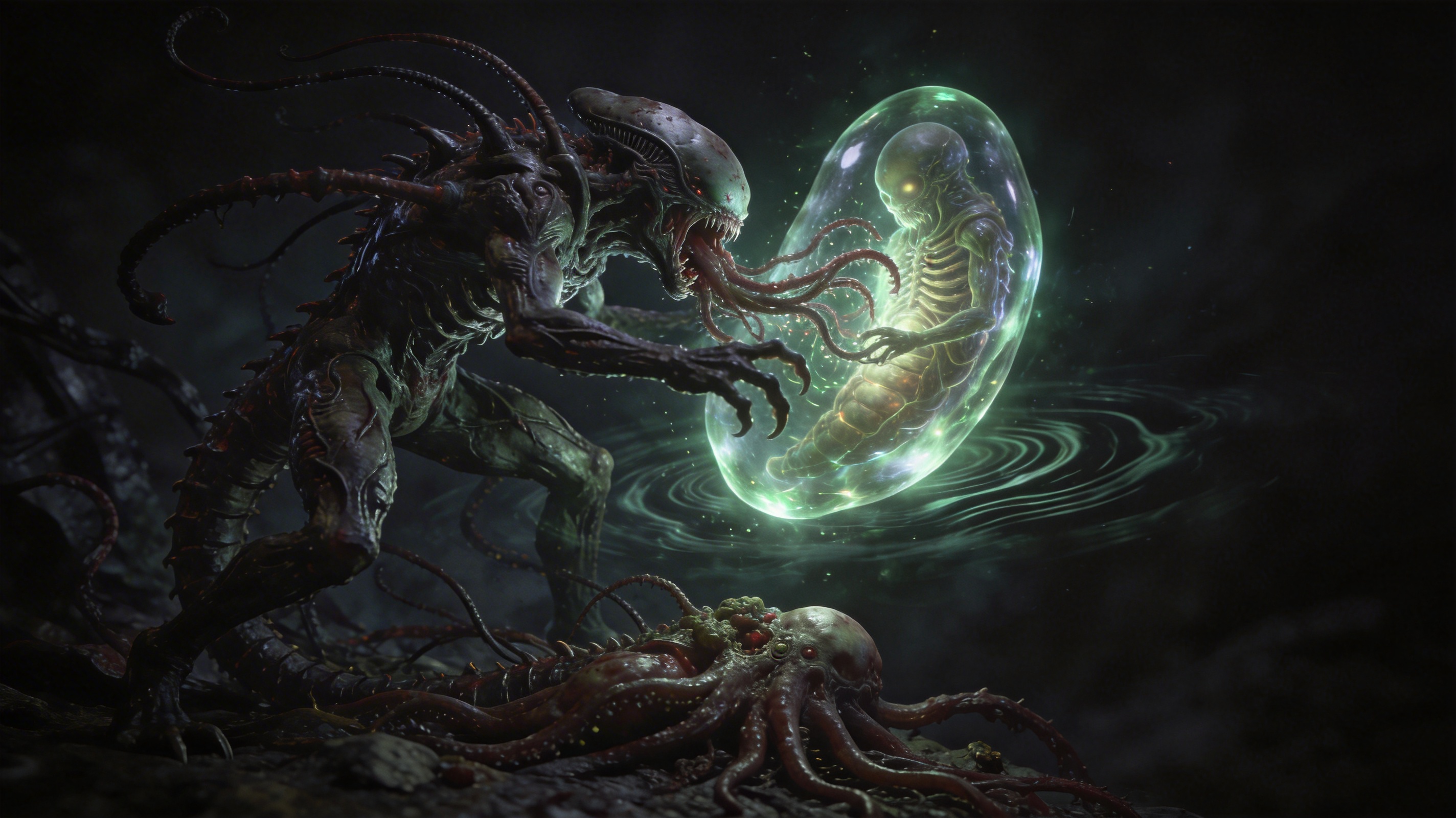 消灭一个友方随从。召唤一个费用为其+2的随机异形随从。